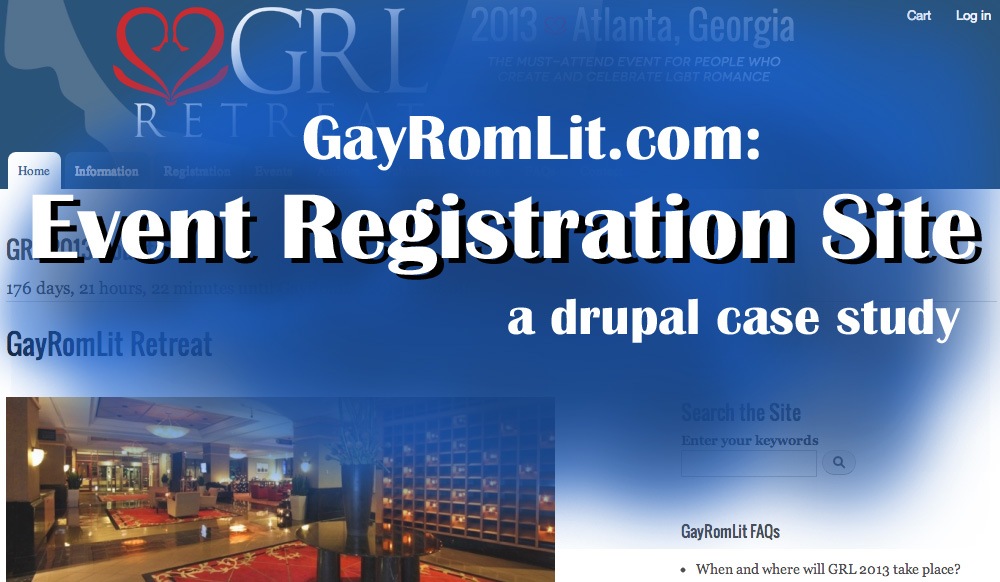GayRomLit (GRL) is an annual con with an enthusiastic, devoted fanbase focused on LGBT romance fiction. Each year, the event moves to a new city, and because registrants fly in from all over the world, an online presence is pivotal. After two extremely successful events, GRL 2013 needed to overhaul its web presence and take control of both its informational presentations and its online registration and paid transactions.